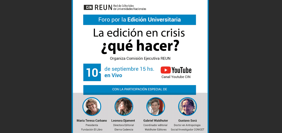 Organizado por la Comisión Ejecutiva de la Red de Editoriales Universitarias Nacionales (REUN), la segunda emisión del Foro se emitirá en vivo por el canal de Youtube del Consejo Interuniversitario Nacional (CIN).