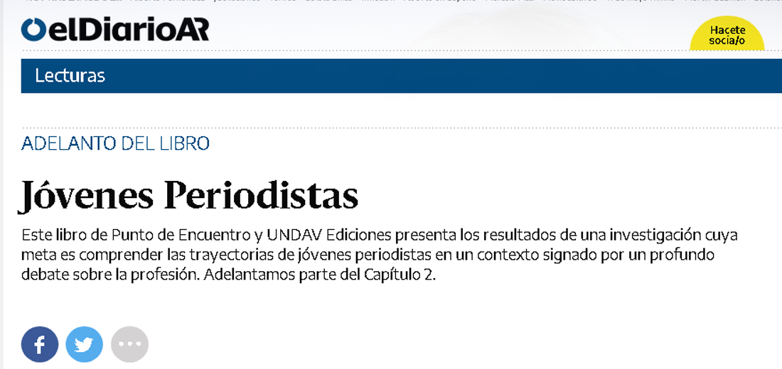 Este libro de Punto de Encuentro y UNDAV Ediciones presenta los resultados de una investigación cuya meta es comprender las trayectorias de jóvenes periodistas en un contexto signado por un profundo debate sobre la profesión. Adelantamos parte del Capítulo 2.